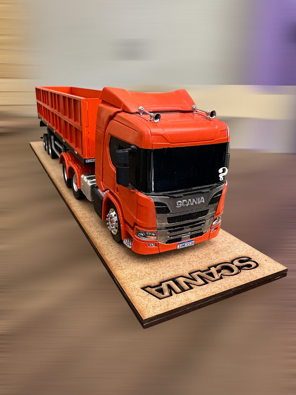 Miniatura Scania – Caminhão com Carreta Basculante em Resina e mdf